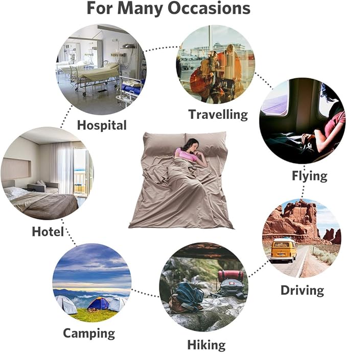 - 【Function of Sleeping Bag Liners and Complete with Pillowcase】: sleeping bag liners are breathable and comfortable, which is ideal to bring to hotels, youth hostel, or anywhere else you might travel. Take comforter off bed and use this to sleep in and it will give you a sense of cleanliness. You can use this versatile travel sleeping bag liners inside your sleeping bag to keep it clean, or use as a stand-alone sleep cover or sleeping bag in very warm climates