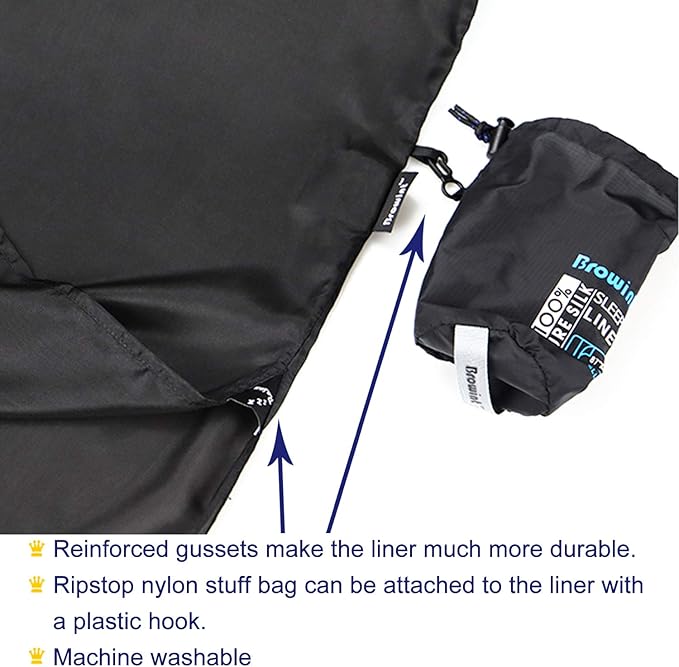 - Silk liner keeps your sleeping bag clean and It’s also ideal for hotels, hostels, travel, camping and sleeping cars. Question again: Is it real silk??? BROWINT: Yes, it is!