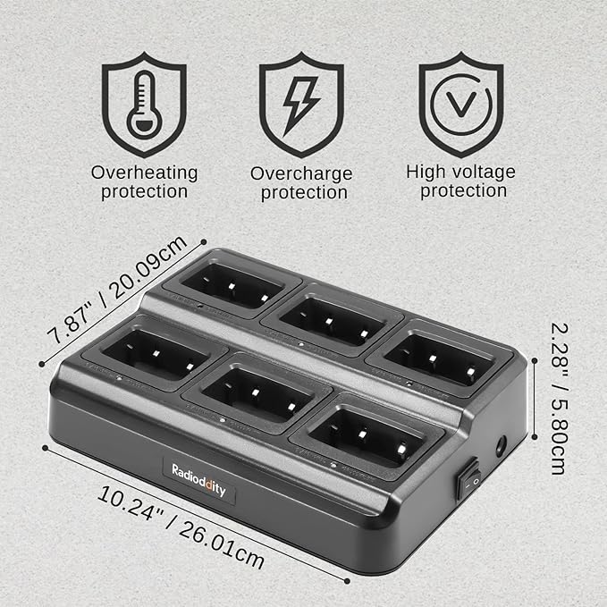 - By connecting a micro USB cable, you can charge it like a mobile phone without worrying about running out of battery. With the 6-way charger station, you can charge 6 radios or batteries at the same time.