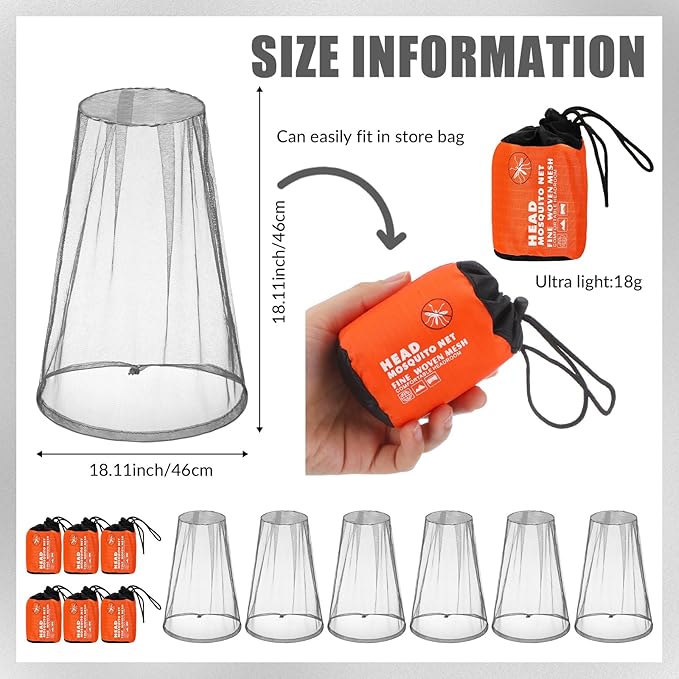 • Size: each mosquito net is approx. 18.11 x 18.11 inch/ 46 x 46 cm in size, big enough for men, women, youth, or elderly wearing