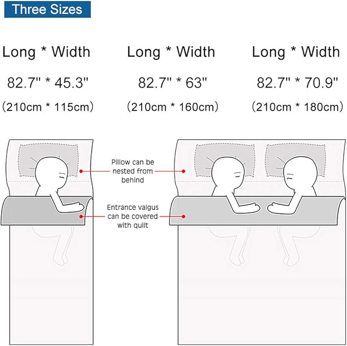 - 【Material & 3 Size of Sleeping Bag Liners】: polyester fiber, breathable, will add a few extra degrees during chilly nights, no pilling or fade, you will feel very comfortable and soft, great even for sensitive skin; two size available: 115 X 210cm/83x45’’ for one person or 160 x 210cm/83x63’’ or 180x215cm/70.9x84.6’’ for two persons, great size even for tall people to stretch out legs. The opening length is 100cm/39’’ for you to get in