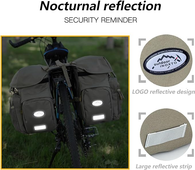 - ❤Night reflective safety reminder: he Reflective trims and logo set at the back of Bicycle Panniers, and the surface of the bag is made of 600D nylon, which is strong and solid. Makes you more conspicuous at night, and makes your more safe when riding at night