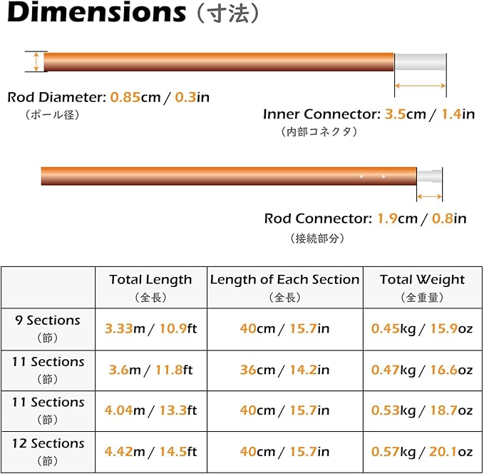 - ✅ HIGH ELASTICITY & FAST INSTALLATION -- Inner shock cord provides an easy way to assemble tent bar quickly. Install and pick up easily, just in a second