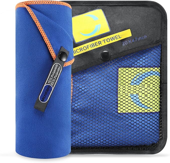 Microfiber Camping Towel - Ultra Soft Compact Fast Drying for Fitness,Hiking,Yoga, Travel,Sports,Camping,Gym,Beach, Swimming, Backpacking (Blue, Large)