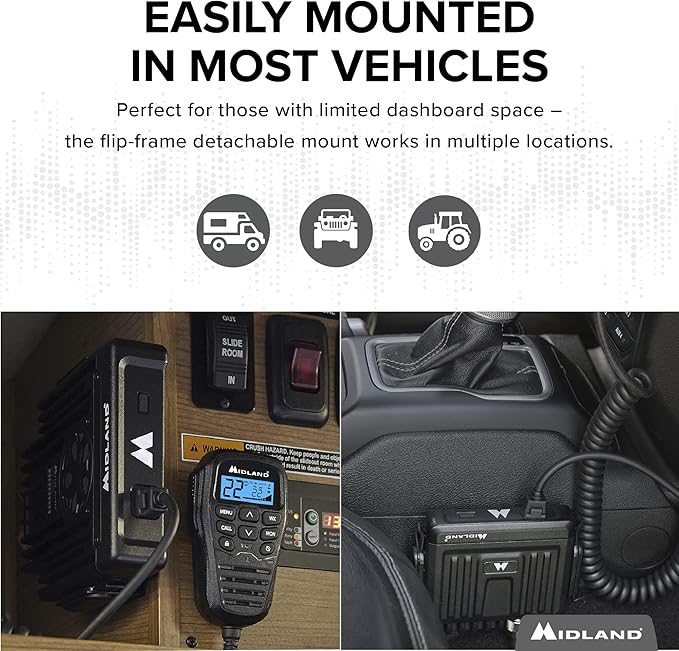 - MIDLAND MICROMOBILE: Take your radio range to the next level with the most powerful GMRS two-way radios on the market. These compact radios bring reliable and versatile communication to overlanders, off-roaders, farmers, RV’ers, and others. The MicroMobile is compatible with all Midland FRS and GMRS walkie-talkies. Whether on a hunting trip, exploring outdoors, or working on a farm, the MicroMobile can help you stay connected with your team or family, even when you're far from civilization.