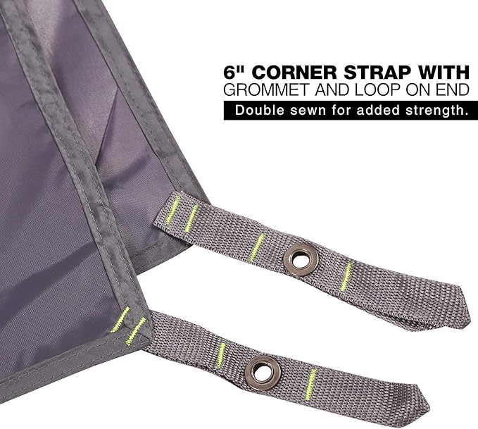 • MULTIPURPOSE TENT TARP FOR UNDER TENT: The outdoor tent footprint is ideal for a tent, the beach, picnics, camping or sporting events. It can also be tied to provide a sun or rain canopy; This is a a must-have for any outdoor activities.