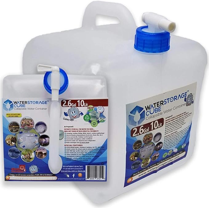 WaterStorageCube BPA Free Collapsible Water Container with Spigot, Camping Water Storage Carrier Jug for Outdoors Hiking Backpack & Survival Kit, Foldable Portable Water Canteen 1.3/2.6/5.3 GallonB07FVDQP77