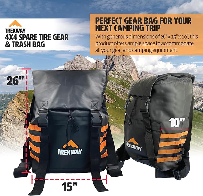 - SPARE TIRE STORAGE & TRASH BAG – Store over 15 gallons of recovery gear, tools, trash/garbage, or anything else you need on your next adventure!