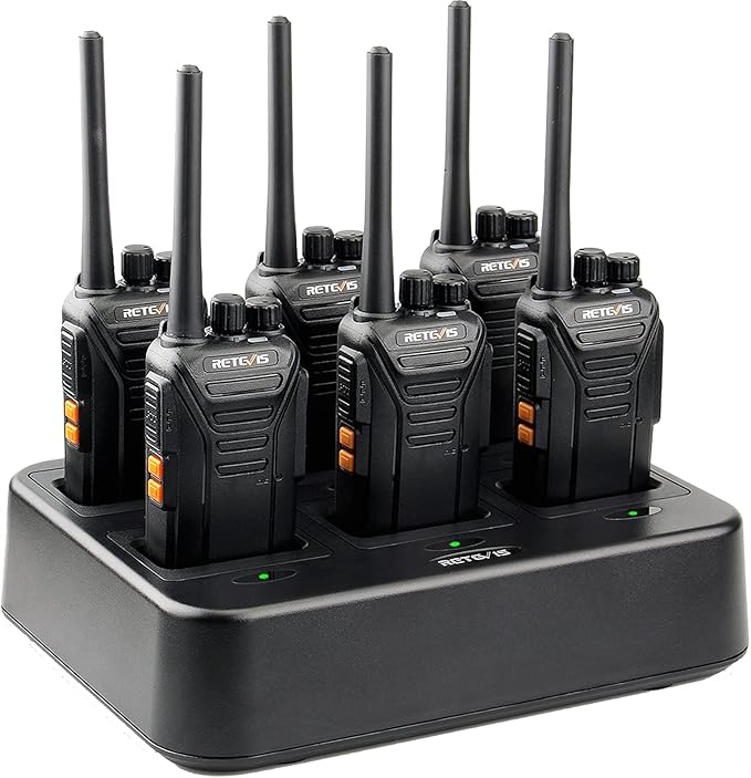 - Retevis RT27 walkie talkie with 6-way charger station;faster charging;avoiding the cumbersome of carrying multiple independent bases