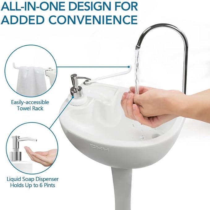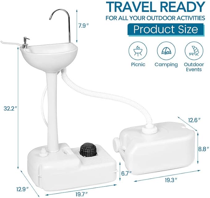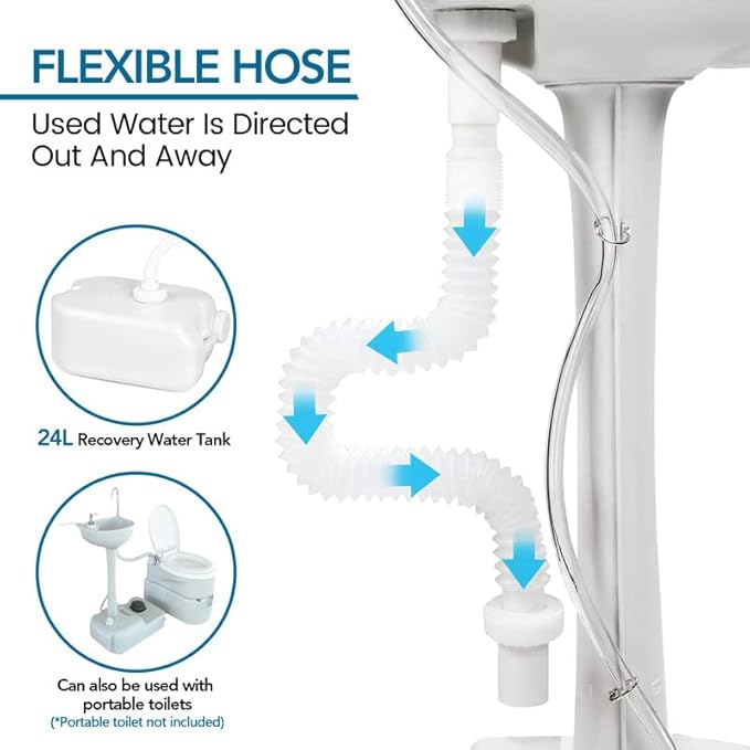 - 【Perfect for Personal Hygiene & Sanitation 】 Includes an integrated liquid soap dispenser, stainless steel towel holder & a flexible drainage hose allowing you to direct waste away, these additions ensure you're able to maintain a healthy level of hygiene no matter where you are