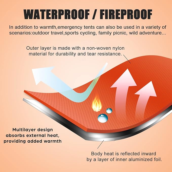 - 🌠【100% Reflection】Reflect at Least 90 Percent of Light Heat. Prevent Hypothermia to Save Your Life With Heater. Most Attrative Orange Red Color, Easy to be Found in the Wild.