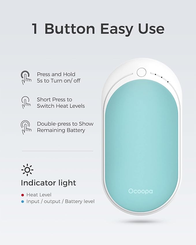 OCOOPA Hand Warmers Rechargeable, 1 Pack 5200mAh Electric Portable Pocket Heater, Heat Therapy Great for Raynauds, Hunting, Golf, Camping, Women Mens Gifts