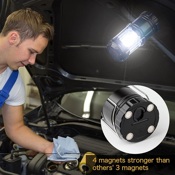 - 【Magnetic Base】: 4 magnets on the bottom of the lantern Incorporate stronger than others' 3 magnets adhering to car or any metal surface, free your hands for doing the work occupying two hands.