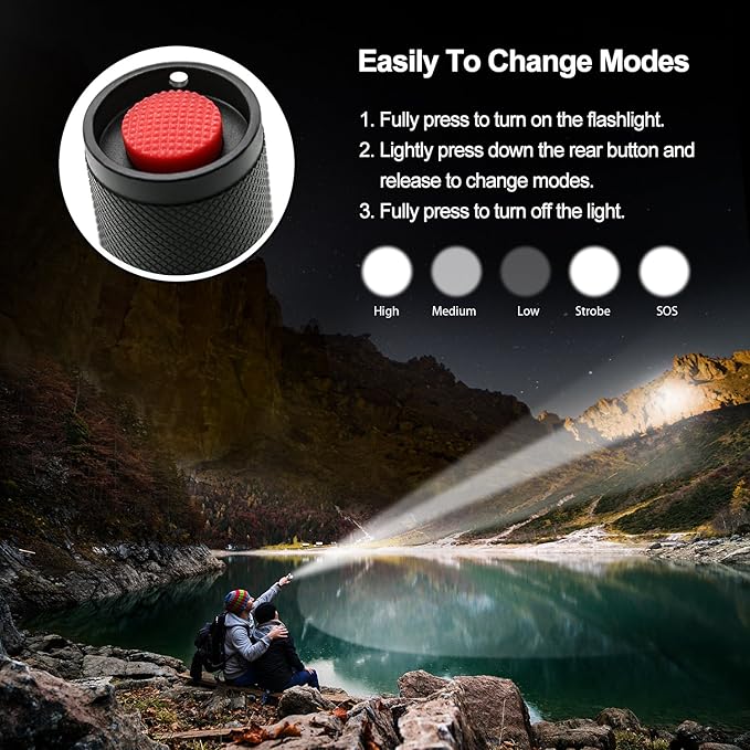 - 【WATERPROOF & HIGH QUALITY FLASHLIGHTS】LETMY flashlight can waterproof from splashing water from any angle and heatproof. Suitable for the outdoor environment and adverse weather conditions. The body of this flashlight is made of high quality aluminum alloy. Sturdy enough for long time daily using