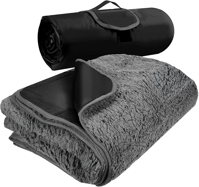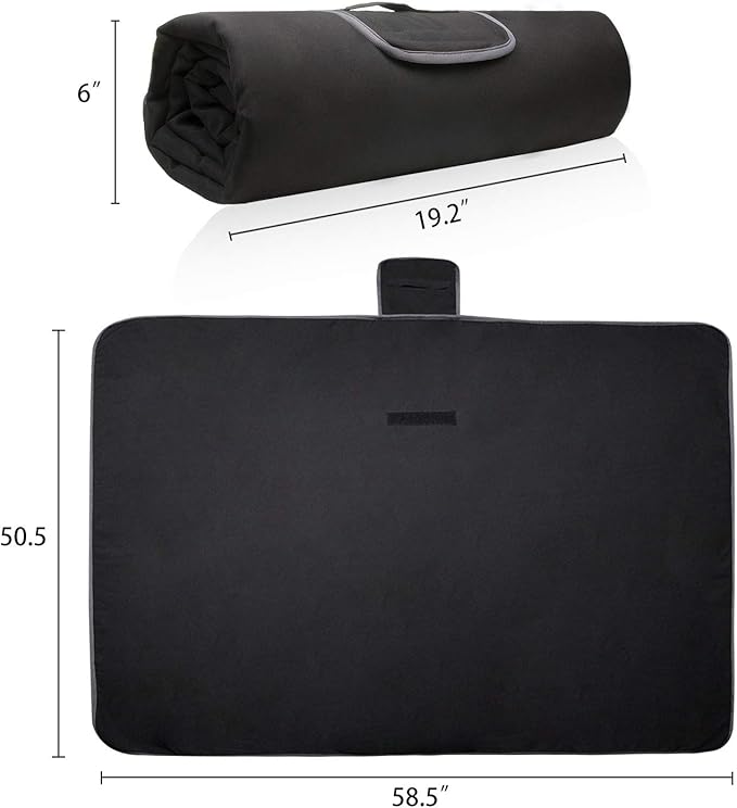 - PACKABLE & PORTABLE- It’s also easily foldable and packable, this compact waterproof throw blanket can be simply rolled up into a handled roll secured by a heavy-duty fastener, which is super easy to store.