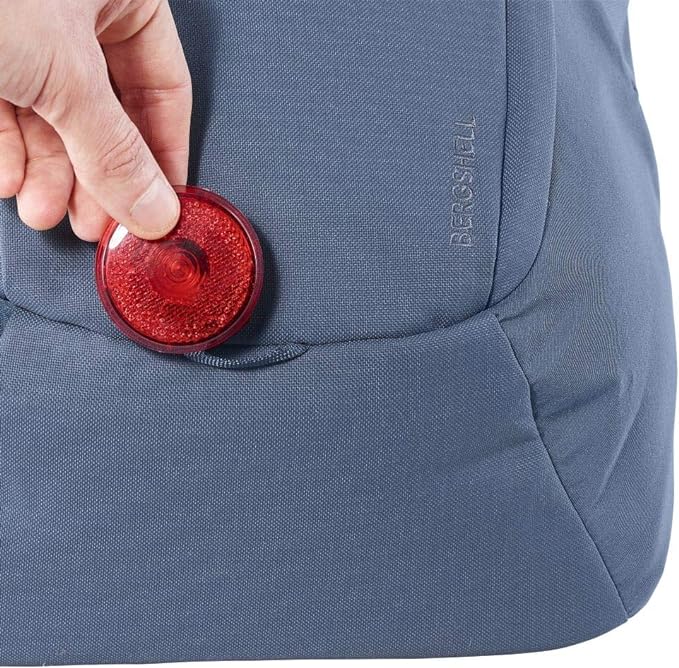 - Large zippered front pocket and attachment loop for a bike lamp.