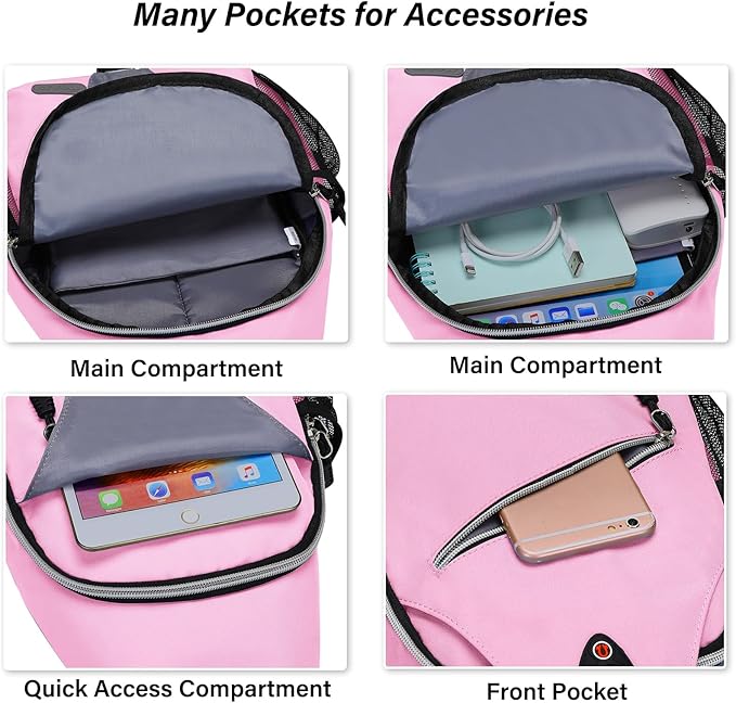 - An earphone hole on the front pocket enables you to enjoy music easily. Meanwhile the breathable shaped padded shoulder strap and back panel is extremely comfortable and lightweight, which will release heat rather than accumulate. Made of soft polyester material with gliding smoothly zippers and strap clip, allows you convenient access to your stuff.