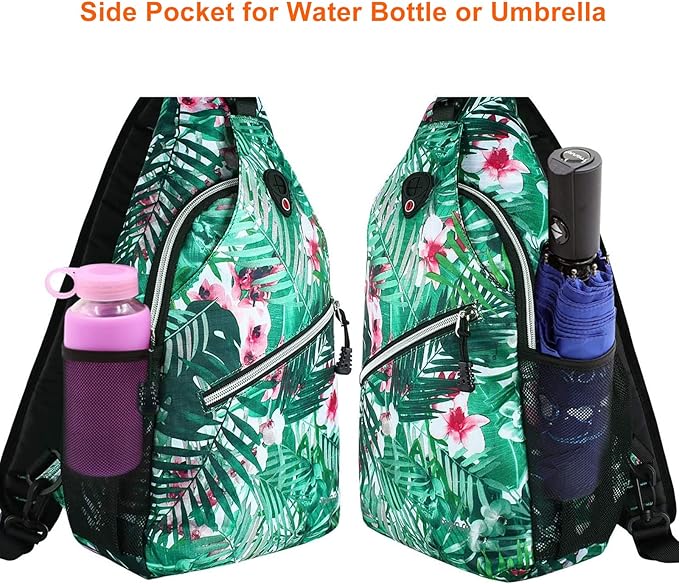 MOSISO Sling Backpack,Travel Hiking Daypack Pattern Rope Crossbody Shoulder Bag, Palm Leaf Flower