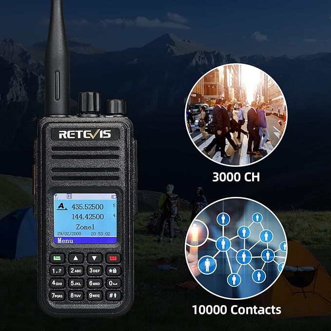 Retevis RT3S DMR Radio, Dual Band Radio, Digital 2 Way Radio, Dual Time Slot 2000mAh Dual Band Scanning SMS Emergency Alarm, Long Range Handheld Walkie Talkie for Camping Traveling(1 Pack)
