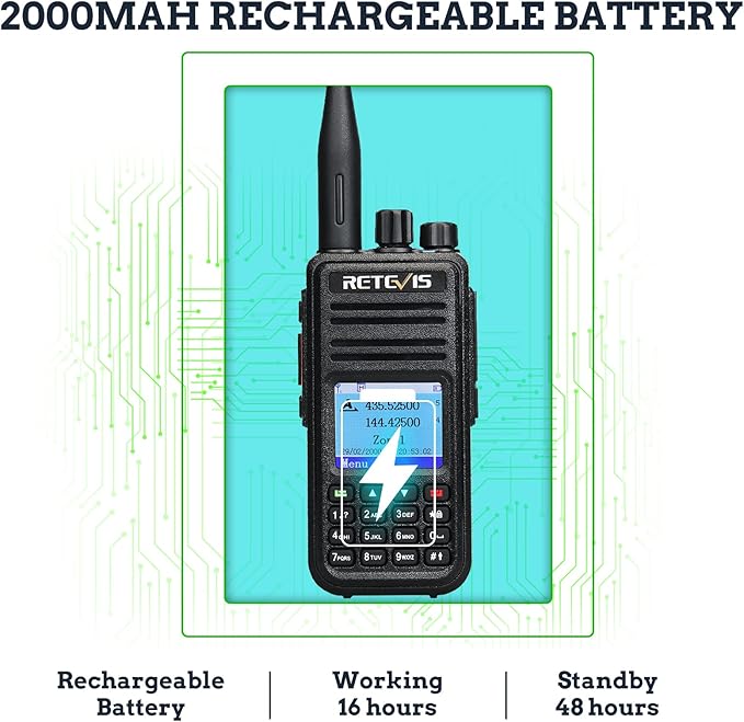 - Large capacity battery; 2000mAh rechargeable walkie talkies supports 16 hours of standby and working time; allows long-term outdoor use; suitable for fast communication