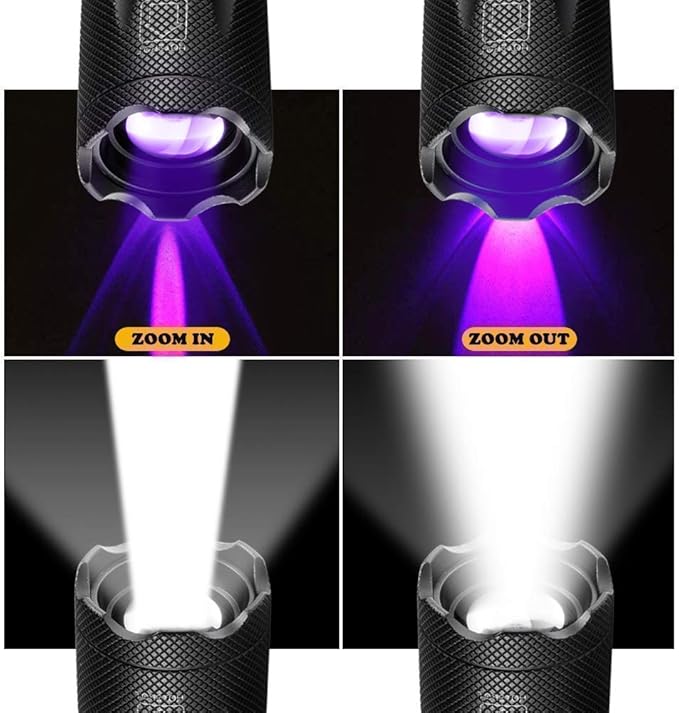 2 in 1 Blacklights Flashlight, UV 395nm Ultraviolet Torch Light High Lumen for Home Security, Outdoor Camping Cycling Hiking, Scorpion Hunting, Pet Urine Stain Detect, Car Fuel Leak