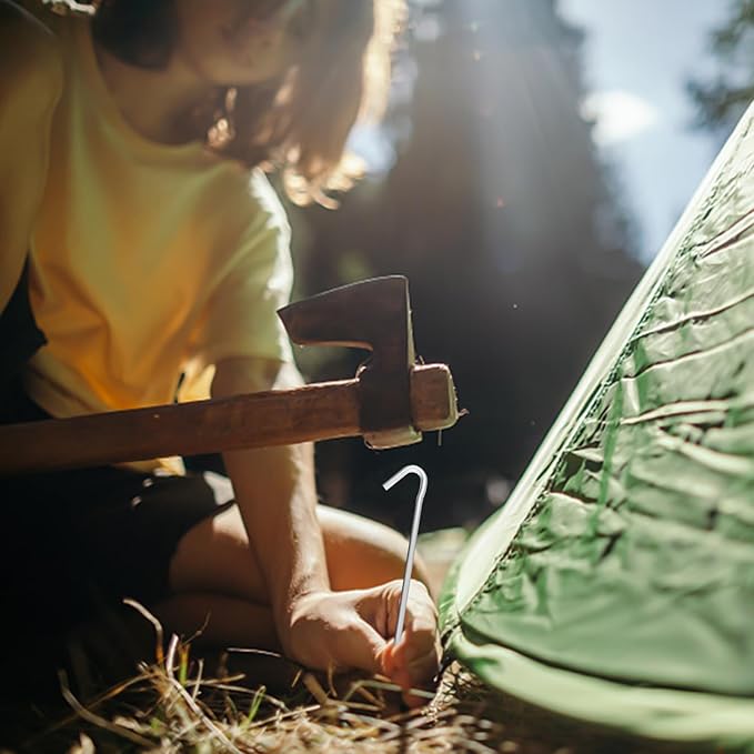 - TENT STAKES & TENT PEGS - Galvanized steel spikes with hook, used as tent stakes, tent pegs,camping stakes, tarp hooks, inflatables stake,stakes Decorations stakes, outdoor decorations stakes, ground stakes, gazebo anchors, garden staples, yard camping stakes, metal tarp stakes, tents stakes, yard stakes, ,tent spikes, tent hooks.