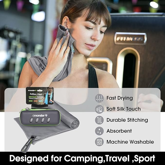4Monster Camping Towel Super Absorbent-Quick Dry Microfiber Towel Ultra Compact & Soft-Travel Towel Lightweight for Backpacking,Hiking,Gym,Beach,Swimming,Yoga