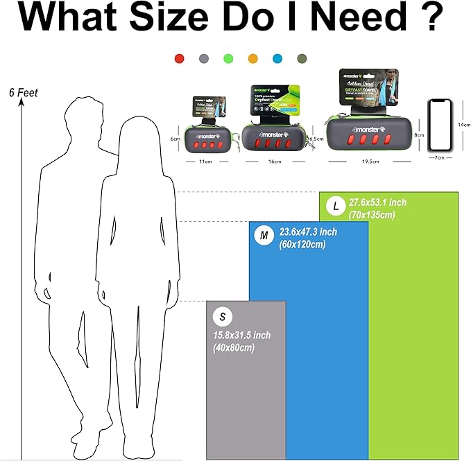 4Monster Camping Towel Super Absorbent-Quick Dry Microfiber Towel Ultra Compact & Soft-Travel Towel Lightweight for Backpacking,Hiking,Gym,Beach,Swimming,YogaB07JJGZ6MF