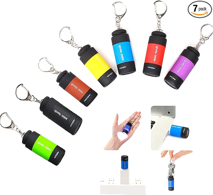 Mini Flashlight Keychain Rechargeable, Colorful Small LED Flashlight Torches for Kids/Adult Hiking Camping,Waterproof Pocket Flashlight for Kids for Backpack,(7 Pack)