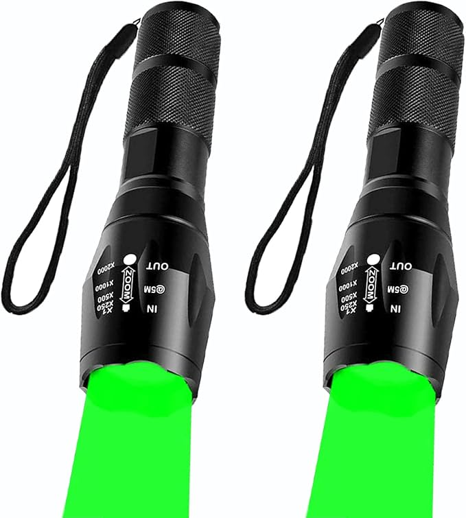 - PACKAGE INCLUDED: 2Pack Green Hunting Flashlight