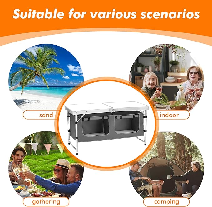 - Multiple Uses: Use this camp table as a grill table, picnic table, or to hold your lantern and other camping gear. It's suitable for all your outdoor activities.