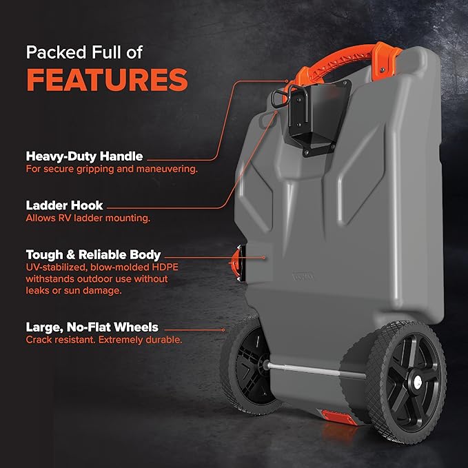 - Tough & Reliable: Measuring 14 ½″ (L) x 24″ (W) x 44″ (H) and weighing 43 lb, this RV essential is constructed from durable, UV-stabilized blow-molded HDPE. It withstands outdoor use without leaks or sun damage
