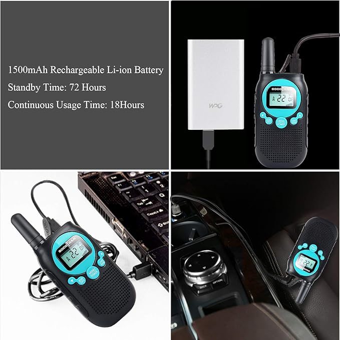 - ✔ Walkie Talkies Rechargeable Li-ion Battery Included - We design rechargeable walkie talkies that are built to last for standby 72 hours and count on hours even days of endless fun. As an added feature, the frs two-way radio with USB charger design supports power bank, laptop, car and PC charging