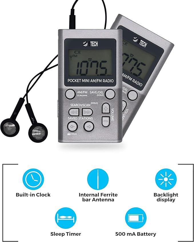- The MPR-AF1 includes two different styles of headphones, allowing you to pick the most comfortable way to use your pocket radio. The convenient LCD display shows the exact am or fm stereo station that you are listening to. This allows you to easily see and tune to your favorite radio station.