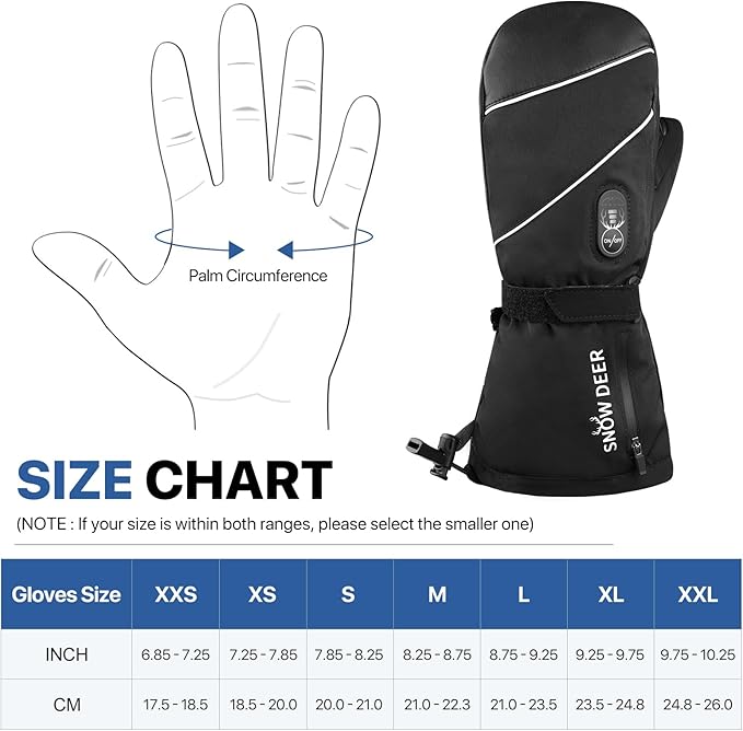 - 【Heating Elements Covers Back of hand & Whole Fingers】SNOW DEER Heated ski gloves upgraded to use fiber heating elements covers back of hand and whole fingers. it is a perfect solution for those chilly winter nights and days.