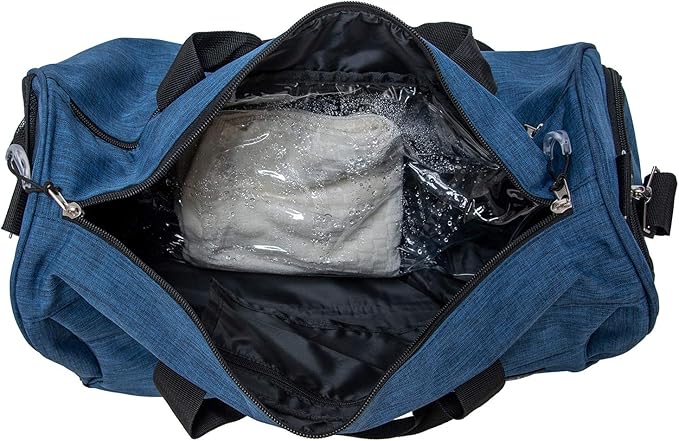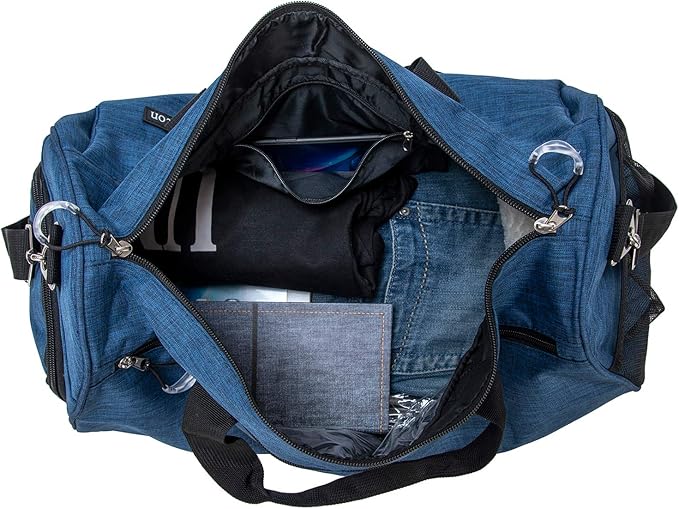 - Multifunctional pockets: one main roomy compartment to keep essentials, one inner zipper pocket for your wallet and cellphone,and it features a side access shoe compartment, separating shoes or other items from the main bag.In addition,behind the duffel bag,it comes with 1 waterproof zipper pocket behind it for separating some wet clothes or towels.