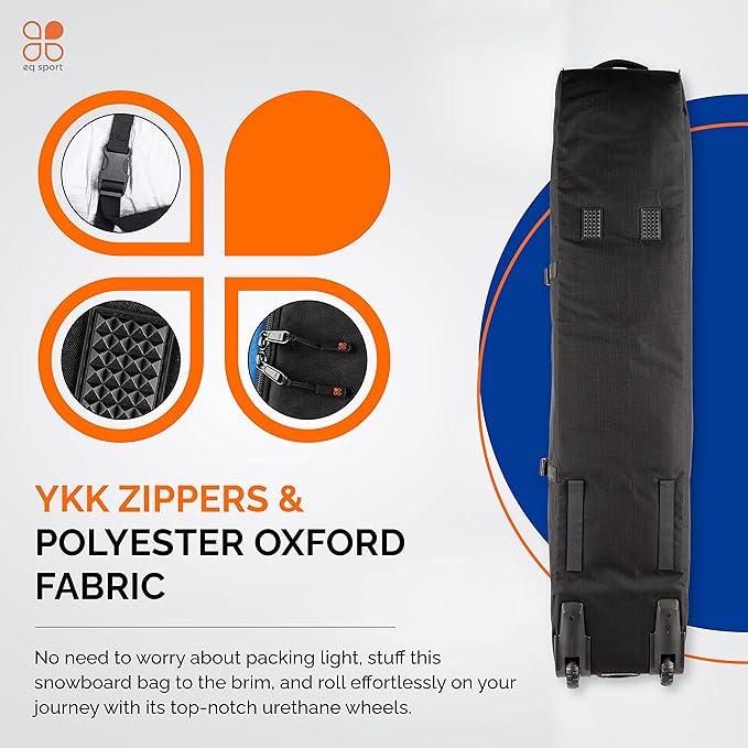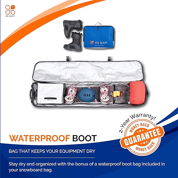 EQ SPORT Snowboard Bag with Wheels - Fully Padded & Waterproof Rolling Snowboard Bag for Air Travel, Boot Bag Included - Fits 2 Boards - Heavy-Duty YKK Zippers - Storage for Snow Gears