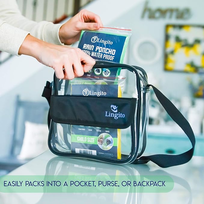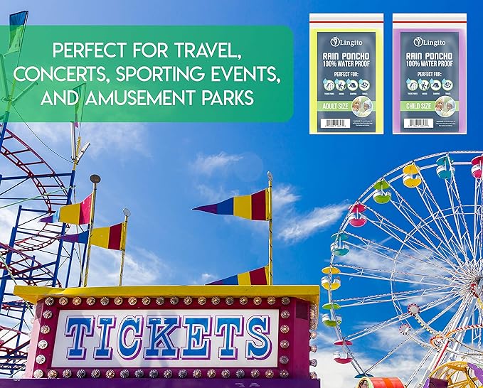 Lingito Rain Ponchos Family Pack - Emergency Drawstring Hood Poncho for Children & Adults Lightweight Reusable or Disposable