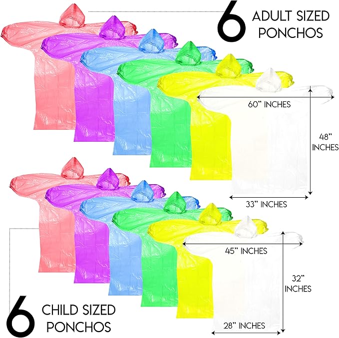 - FAMILY MULTI-PACK: Look no further! This family multipack includes 6 adult & 6 child waterproof rain jackets with 1 color for each set. Get the whole family dressed for rainy adventures, designed specifically to fit toddlers, children and adults of all sizes perfectly!