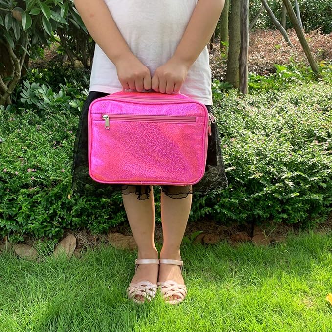 - ✿ Travel-friendly design – Each portable,compact, lightweight lunch pail can hold a good-sized container with plenty of room for snacks, utensils and juice boxes. Features include a zippered front pocket for hiding a surprise dessert or fun note, a handy inner mesh pouch perfect for napkins and utensils,you could secure water bottles or ice packs in the box.