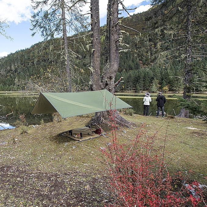 - 6 GUY LINES with 10 ties that can be pitched in multiple configurations. Can be used as a rain fly for hammock, tent tarp to prevent the wear and tear of your tent against the ground. Let you successfully camp on everything from a sandy beach to mountain slope. It's just right for a picnic, sun canopy, and much more.