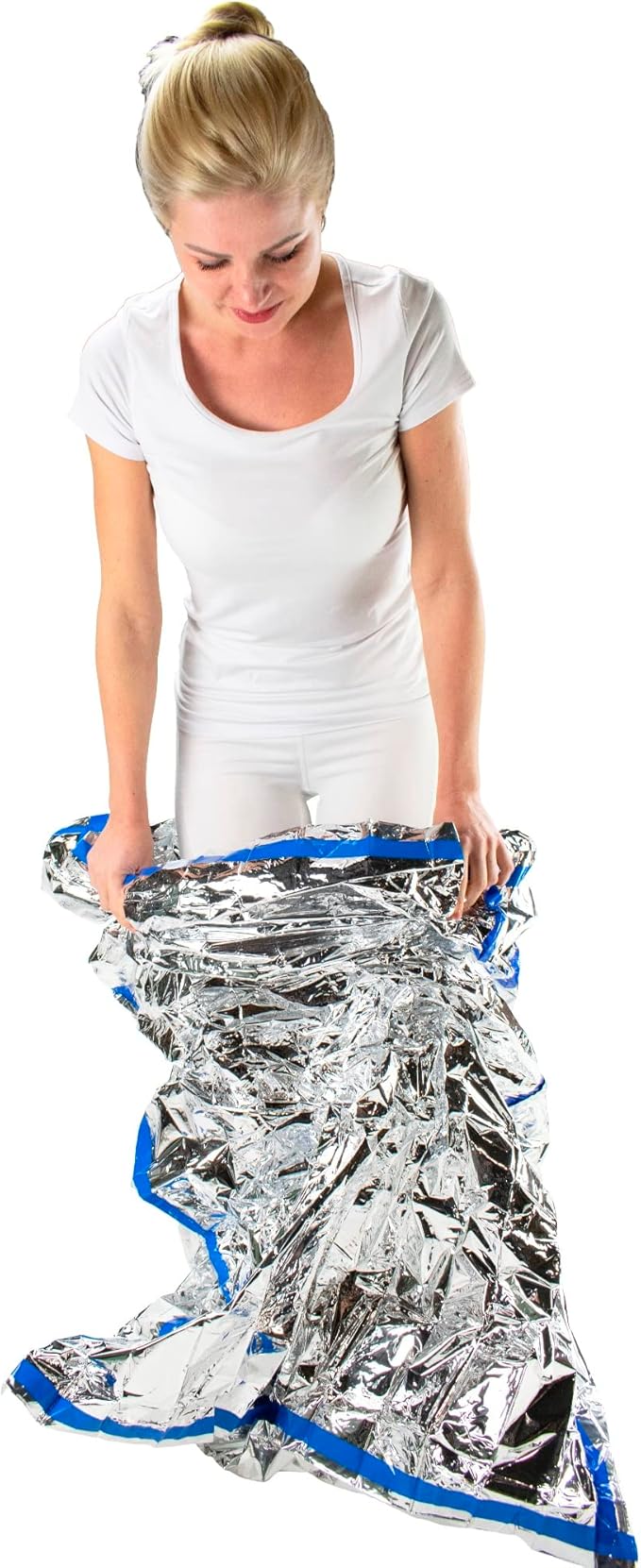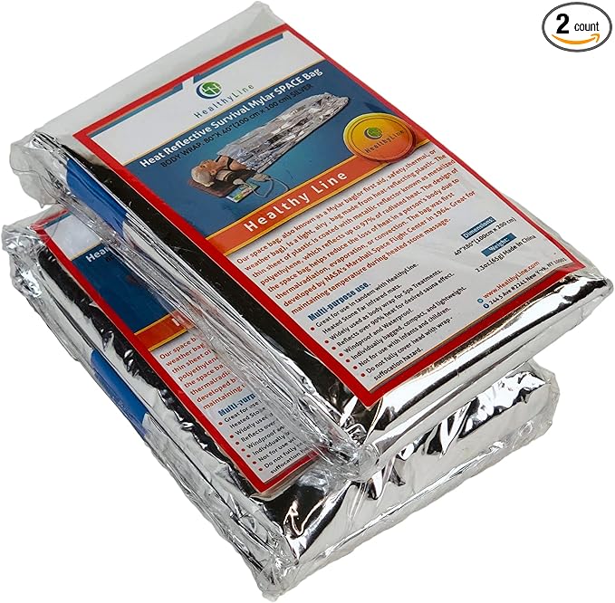 HealthyLine - Emergency Mylar Thermal Space Sleeping Bags (2 Pack) - for Detox & Weight Loss Sauna Experience, Far Infrared Therapy - Retains up to 97% of Body Heat - Silver 80in x 40in