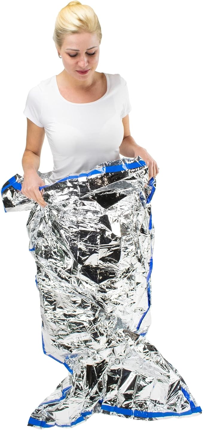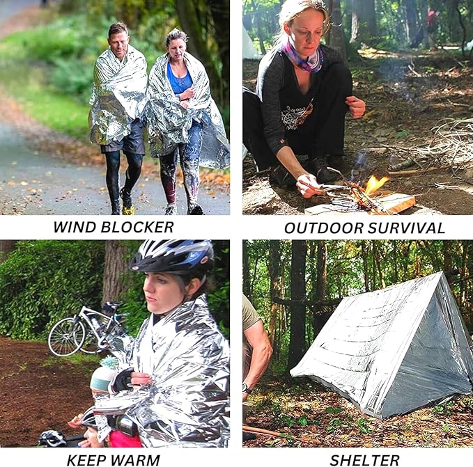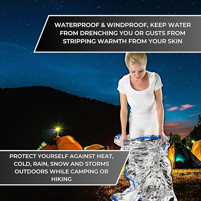 - Solar Blanket for Survival Kit : Very adaptable & resistant thermal foil blankets that are waterproof, windproof, reusable, great ground cover & retaining heat. Can also serve as rain ponchos, emergency tents, lightweight tarps, and more, making this emergency thermal blanket versatile for camping, hiking, and other outdoor activities