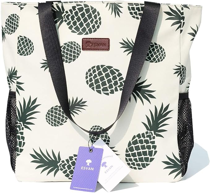 ESVAN Original Floral Water Resistant Large Tote Bag Shoulder Bag for Gym Beach Travel Daily Bags Upgraded