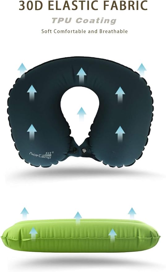 AceCamp Inflatable Air Pillow-Comfortable, Lightweight, Compact, Portable, and Perfect for Backpacking, Car Camping, and Even Airplane Travel (Green-u)