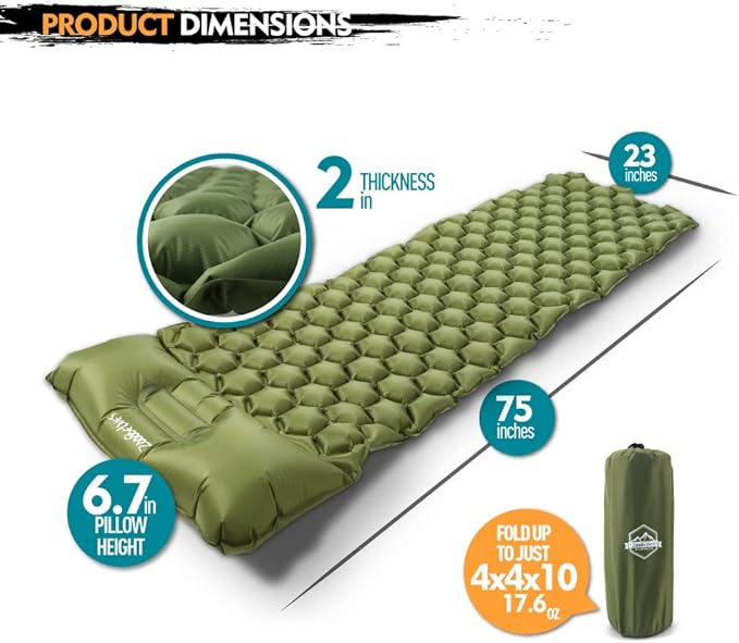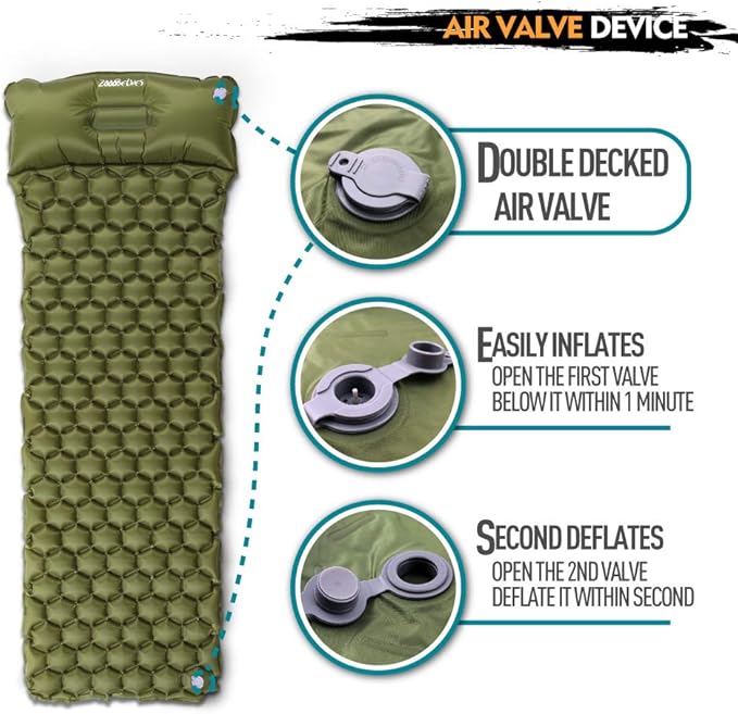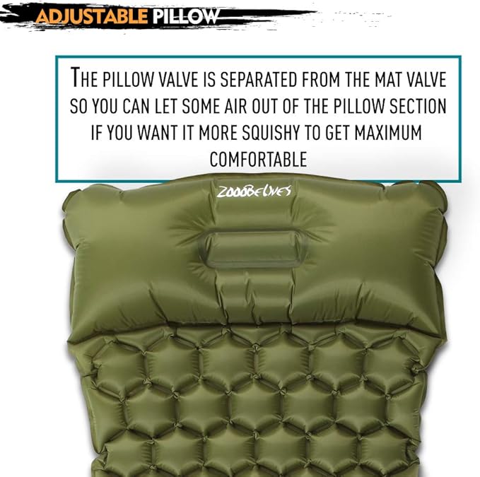 ZOOOBELIVES Ultralight Sleeping Pad with Built-in Pillow, Inflatable Camping Mattress for Backpacking, Traveling and Hiking, Compact and Portable Camp Mat