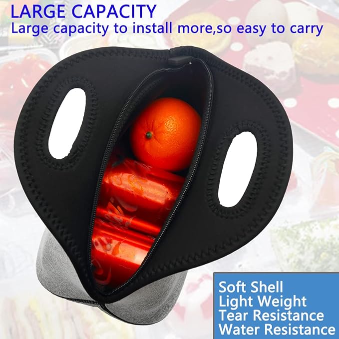 - Material:The Flowfly lunch totes are made of 5MM thick high quality neoprene material and smooth sturdy zipper and comfort-grip rubber tab,Vinyl-free, PVC-free.Neoprene is a kind of material which can also make wet suit,it can keep a surfer's body temperature stable, just think our lunch bag will insulate your lunch, it is durable and easy to clean.