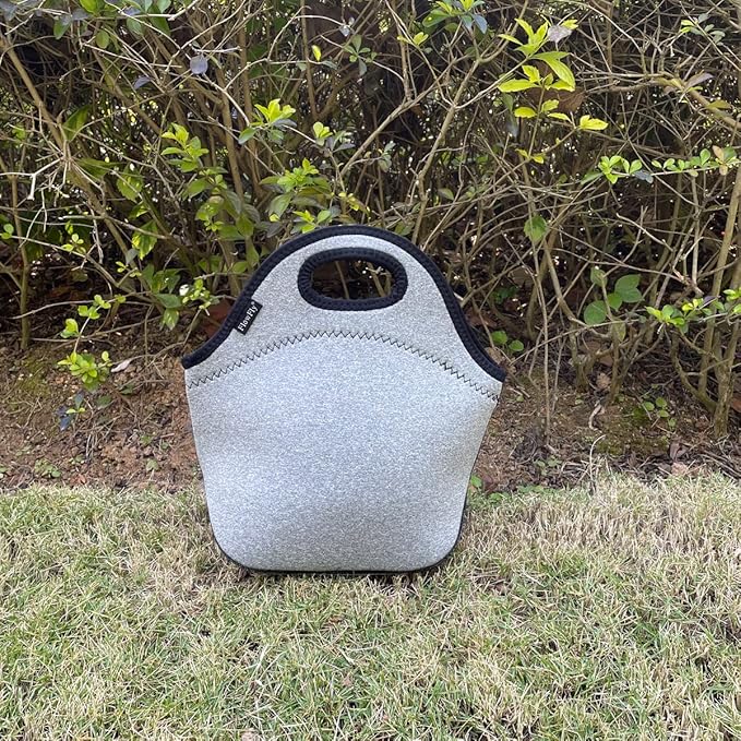 FlowFly Neoprene kids Lunch box Insulated Soft Bag Mini Cooler Thermal Meal Tote Kit for Boys, Girls,Men,Women,School,Work, Office, Grey