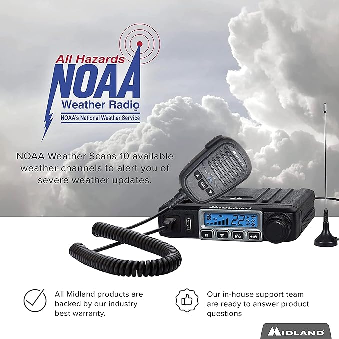 - NOAA Weather Scan + Alert: NOAA Weather Scan will automatically scan through 10 available weather (WX) band channels and locks onto the strongest weather channel to alert you of severe weather updates. NOAA Weather Alert will sound an alarm indicating that there is a risk of severe weather in your area. NOAA Weather Radio will also be used to broadcast AMBER alerts for missing children
