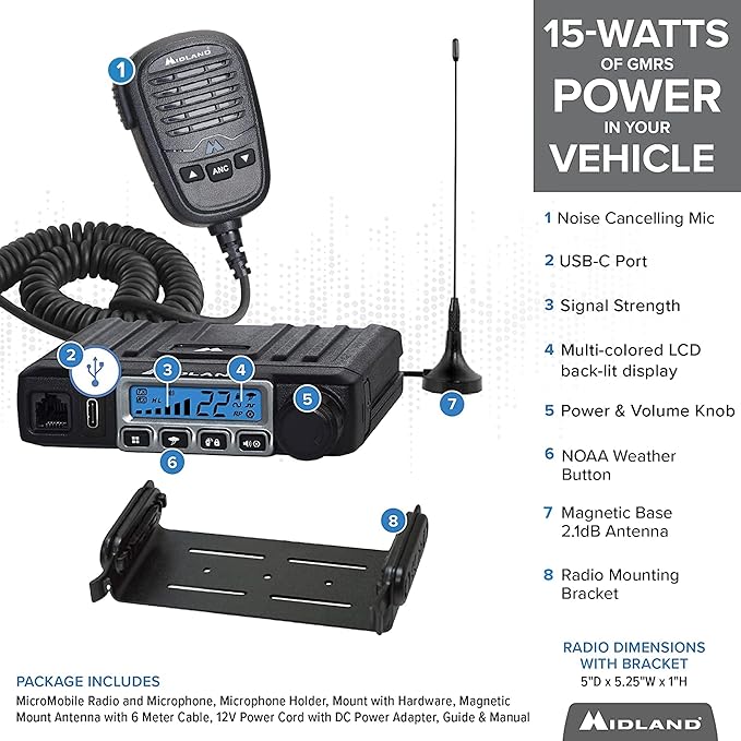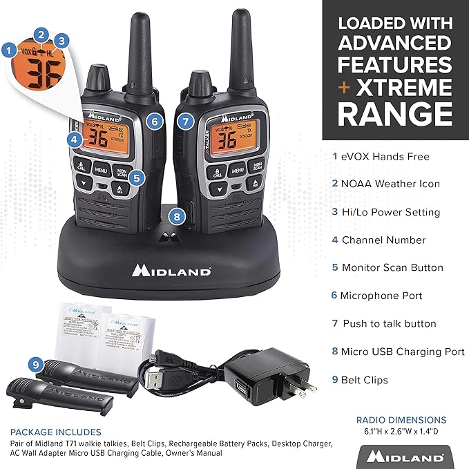 - Versatile Two-Way Radios: Stay empowered with the MXT115 MicroMobile walkie-talkie and MXTA37 mic. Enjoy 15 High/Low Power GMRS channels and 8 Repeater Channels for extended range. Seamlessly pair with the T71VP3 walkie-talkie featuring 36 GMRS channels and channel scan for easy activity detection. Stay connected with this dynamic duo for reliable and efficient communication! Upgrade your communication game today!